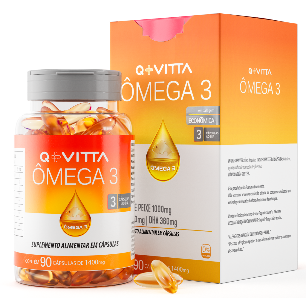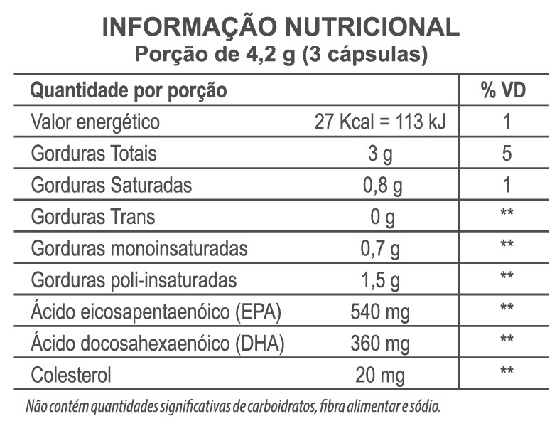 Suplemento alimentar com 1000 mg de óleo de peixe sendo 540 mg de EPA e 360 mg de DHA por dose diária de três cápsulas.