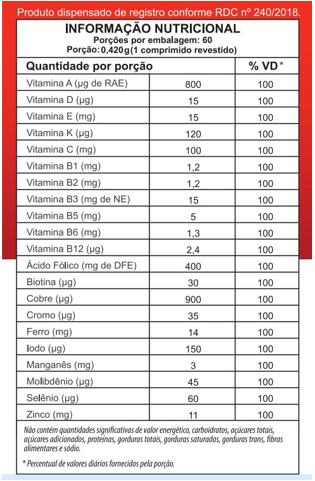 Contém 60 comprimidos. Recomendação de consumo de 1 comprimido ao dia. Indicado para maiores de 19 anos.