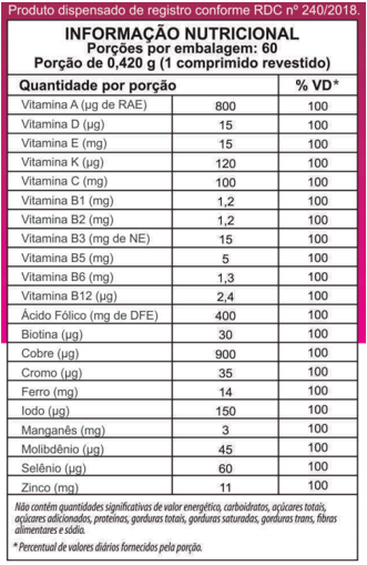 Contém 60 comprimidos. Recomendação de consumo de 1 comprimido ao dia. Indicado para mulheres acima de 19 anos.