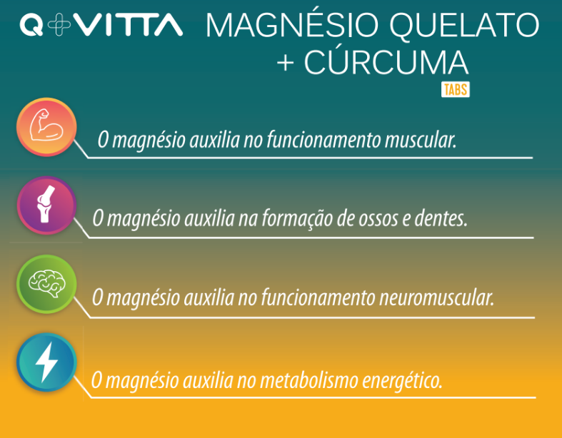O Magnésio Quelato + Cúrcuma TABS combina dois ativos essenciais para quem busca mais qualidade de vida. O magnésio contribui para a saúde muscular, óssea e neurológica, enquanto a cúrcuma é reconhecida por suas propriedades antioxidantes e anti-inflamatórias. Juntos, ajudam a promover bem-estar, reduzir dores articulares e combater o estresse oxidativo.