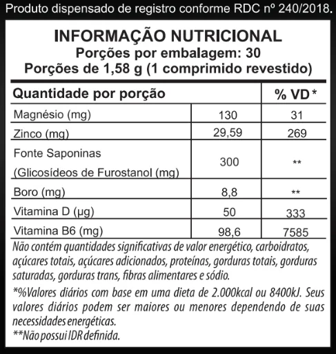 Contém 60 comprimidos. Recomendação de consumo de 1 comprimido ao dia. Indicado para maiores de 19 anos.